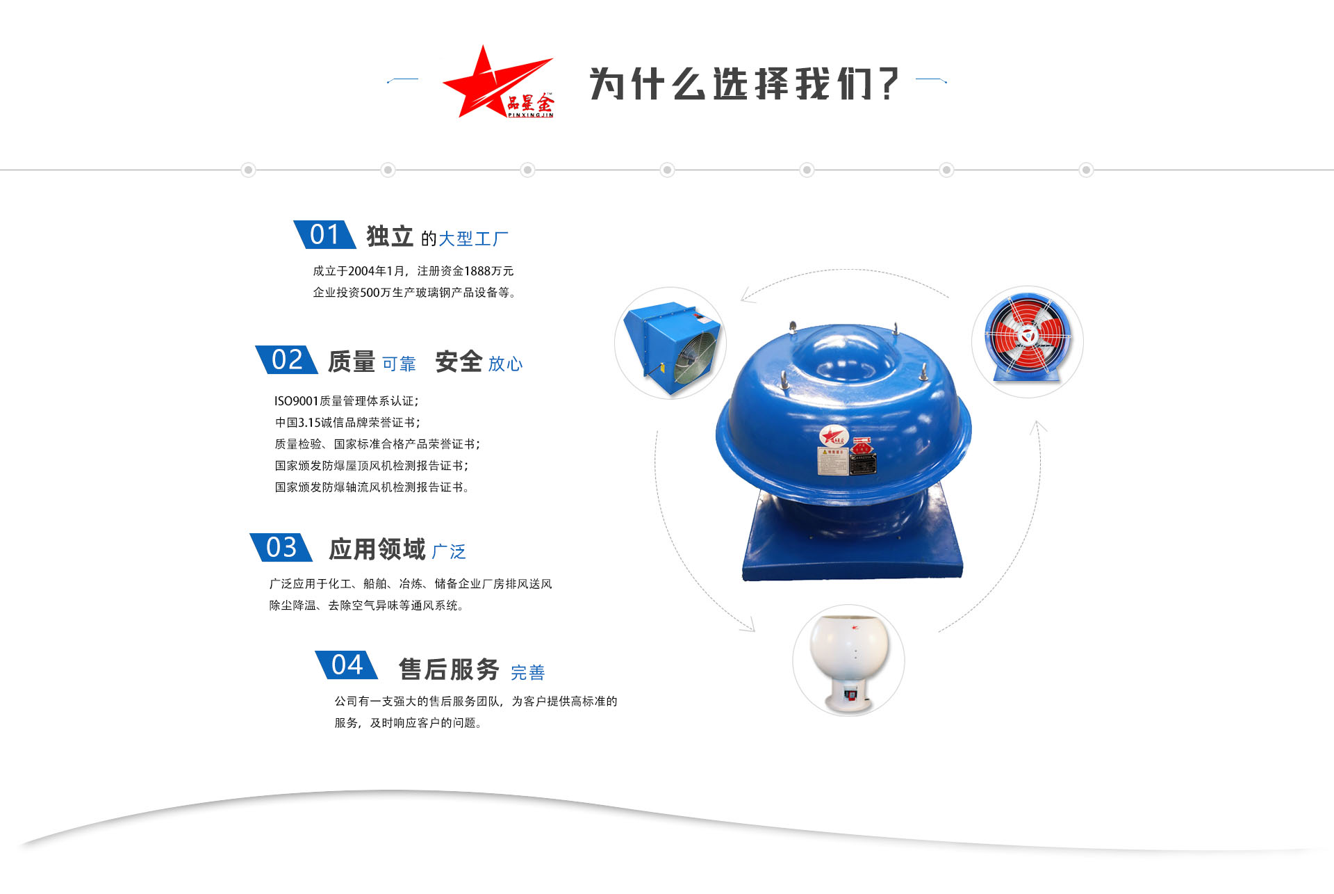 應用于途化工、船舶、冶煉、儲備企業(yè)廠房排風送風、除塵降溫、去除空氣異味等通風系統(tǒng)